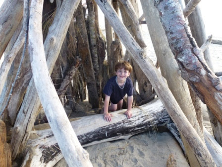 | Nicholas loves the forts he finds at the beach |