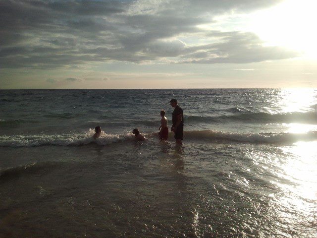 | David playing in the Hawaiian ocean last week with his boys |