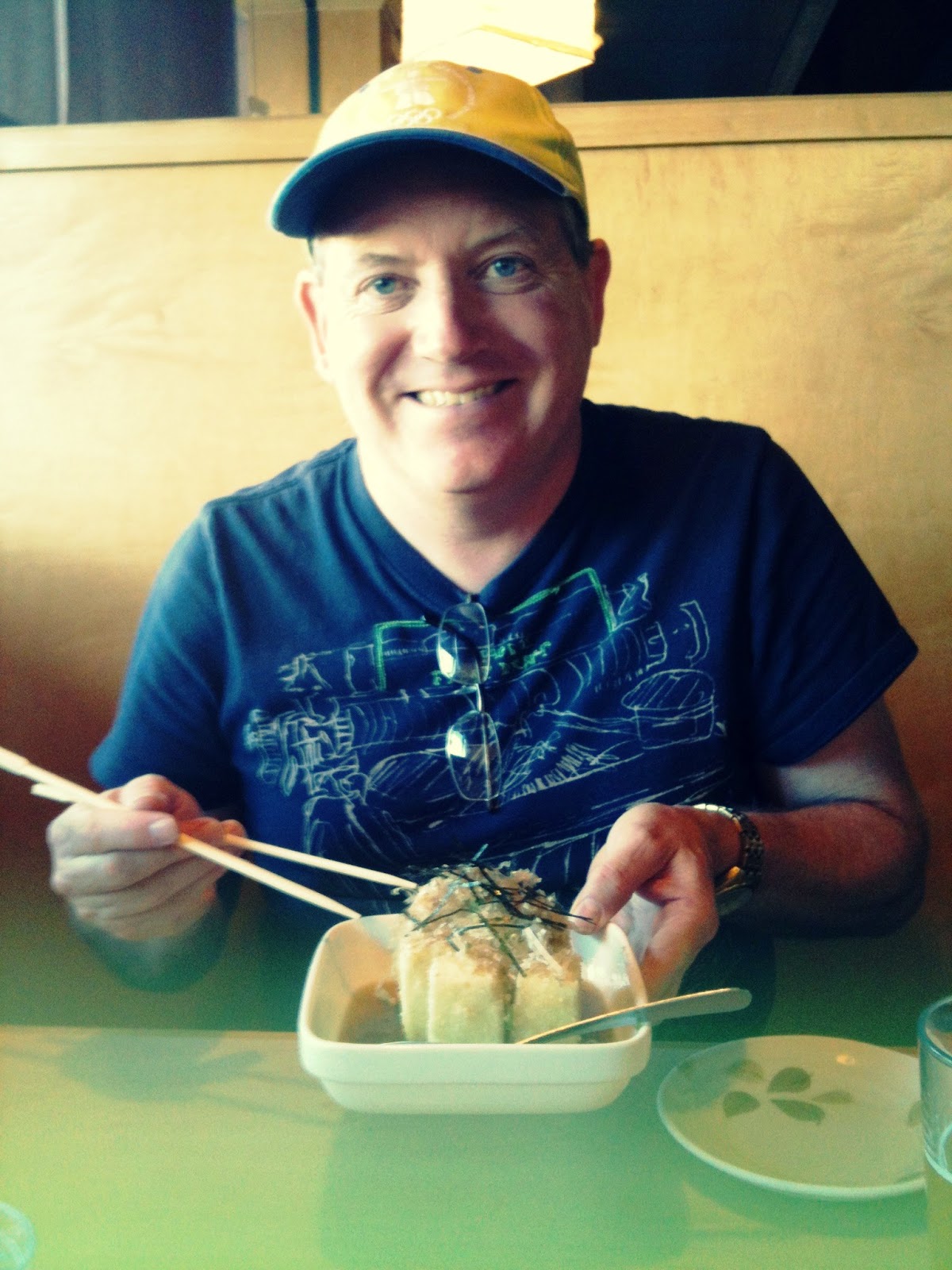 | Mike eating his favorite Japanese food, agedashidofu |