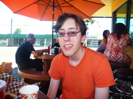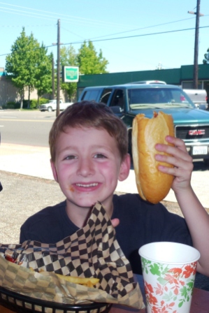 The next day we hit the road again and stopped for lunch in Redding, California, at a great hot dog place called Wilda’s Grill. The kids had hot dogs, but Mike and I had the fantastic Buddha’s Bowl, which is brown rice, red beans, chicken or tofu, avocado, shredded cabbage, jalapenos, cilantro, and two sauces. It was delicious!
