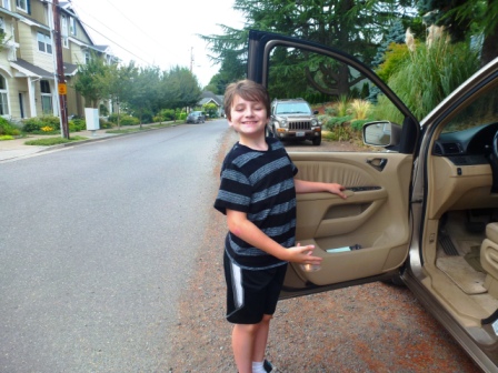 First time out of the car–looks like he is teaching a class!