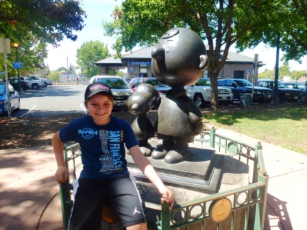On the trip home after our week in the Bay Area, we made our first stop in Santa Rosa (bio break), where we discovered it was the hometown of Charles Schulz. Kieran enjoyed getting his photo taken with the Peanuts characters. I just discovered that Santa Rosa has a great Charles Schulz museum–we’ll have to stop there if we take another trip in that area.