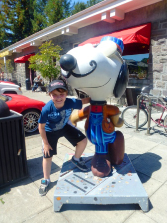 On the trip home after our week in the Bay Area, we made our first stop in Santa Rosa (bio break), where we discovered it was the hometown of Charles Schulz. Kieran enjoyed getting his photo taken with the Peanuts characters. I just discovered that Santa Rosa has a great Charles Schulz museum–we’ll have to stop there if we take another trip in that area.
