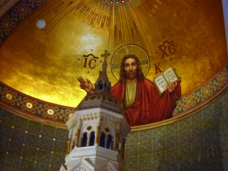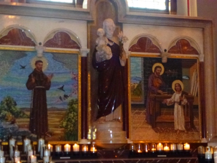 We went into the very high-church St. Peter and Paul Church in North Beach, where Mike trained Nicholas on all the various saints in statues and stained glass.