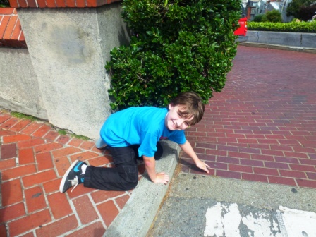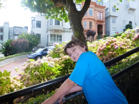 Later in the week on our final day in the city, Kieran really wanted to ride on another cable car and I was the only other person interested, so we broke away from the larger group and hopped on the Powell & Mason line. He was desperate to see Lombard Street, but that particular line (unlike the Powell & Hyde) stops several blocks below Lombard Street. For the sake of my son, I hiked up several very steep San Francisco hills so he could experience Lombard Street! His joyous reaction was worth it.
