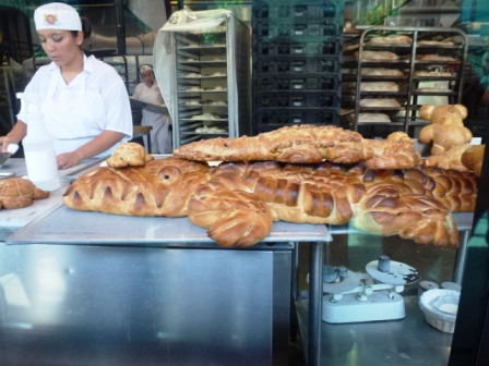 And all the way downhill to Fishermen’s Wharf, where we peered in at sourdough bread scultping: