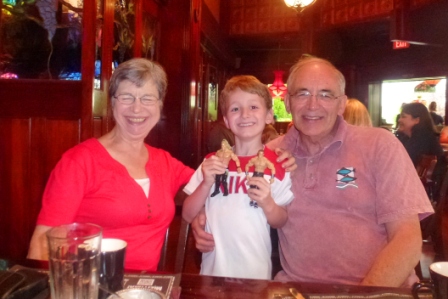This evening we took Nicholas out to the Old Spaghetti Factory to celebrate his birthday. He is obsessed with WWE of late, and in particular, John Cena, so most of his gifts were on a wrestling theme. I abhor WWE, but Nick is so cute when he talks about all of the wrestlers (he’s memorized all sorts of facts and trivia), does wrestling poses, or sings their theme songs. I would have never indulged Chris at this age in WWE (he got into it when he was in middle school, and it’s because of his old wrestling DVDs that Nick became interested). I also enjoy seeing the oldest and youngest bond over wrestling.