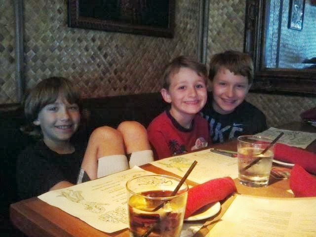 | Nicholas with his cousins at the restaurant in Monterey |