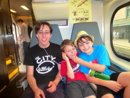 | Sharing music on Caltrain with my birthday boy |