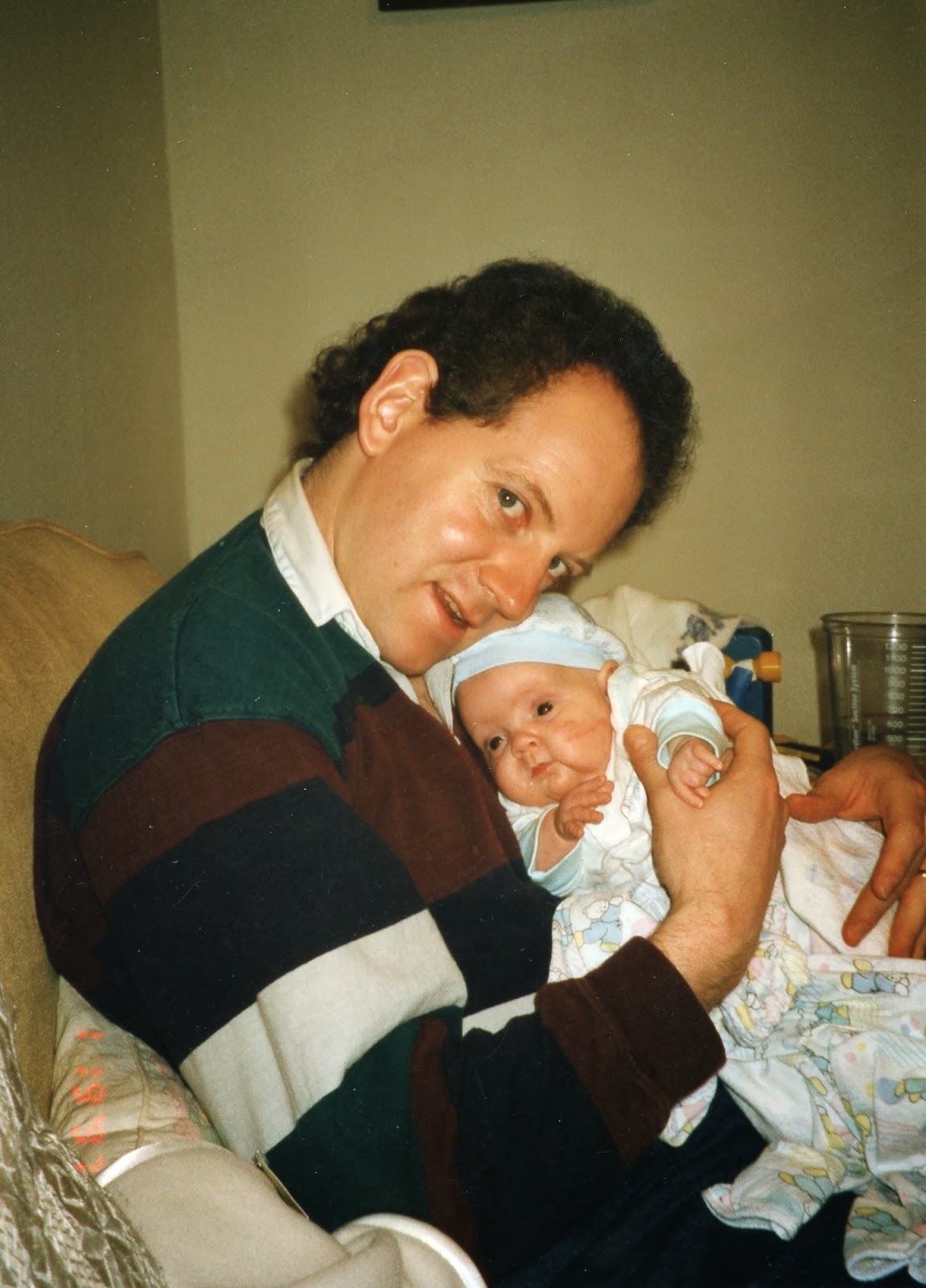 Because we were terrified of him getting sick, we rarely ventured out of our house except to take walks or go to various doctors’ visits. An older preemie we knew (34 weeks) contracted the deadly-to-preemies disease RSV after he went home, returned to the hospital and was on life support, and tragically died–all in the time we were in the NICU. It was heartbreaking. We required everyone who visited to wash their hands thoroughly as soon as they walked in the door. Our pediatrician’s office staff ushered us in the back entrance so we wouldn’t have to sit in the waiting room and expose him to germs. Our efforts paid off, because he did not get sick during the first year of his life. He unfortunately contracted RSV right before Christmas 1997…and was in the hospital for a week in isolation, with a horrible case of pneumonia. The NICU nurses told us how lucky we were that he didn’t have to be readmitted to the hospital for a year, but that was small comfort for us! So 1997 was another grateful Christmas spent at home after a hospital stay.
