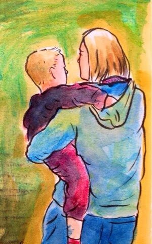| Evening Drawing-Meditation: “This is YOUR beloved child – With whom I am well pleased. Listen to them.” (Reference photo from http://www.bbc.com/news/world-middle-east-37116349 showing 5-yr old Omran Daqneesh after he was rescued from a destroyed building after an air strike in Aleppo.) |