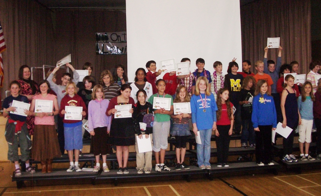 6. Strong commitment to literacy. Thanks to the creative and committed Elin Kordahl and the fantastic teachers, Maplewood is highly strong on literacy. Each year the school celebrates Read across America with local celebrity guests in the classrooms, Readaloudathon (which Mike has run for years, and which raises thousands of dollars each year for the school), Bookbaggers (an ambitious literacy-themed, elaborate sleepover, which was started by the previous librarian, Pepye Ladd), Oregon Battle of the Books (which made me wish I was a student again and could compete myself!), and Poem in Your Pocket Day. Maplewood also has a Reading Friends program, in which adults volunteer to read with kids who need a little extra reading help. Mike was a Reading Friend this year for the first time and had a rewarding experience.