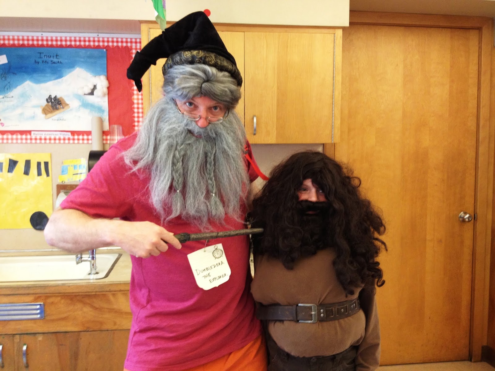 Mike decided to dress up one year as Dumbledora, and he met Hagrid (fifth grader Annika)