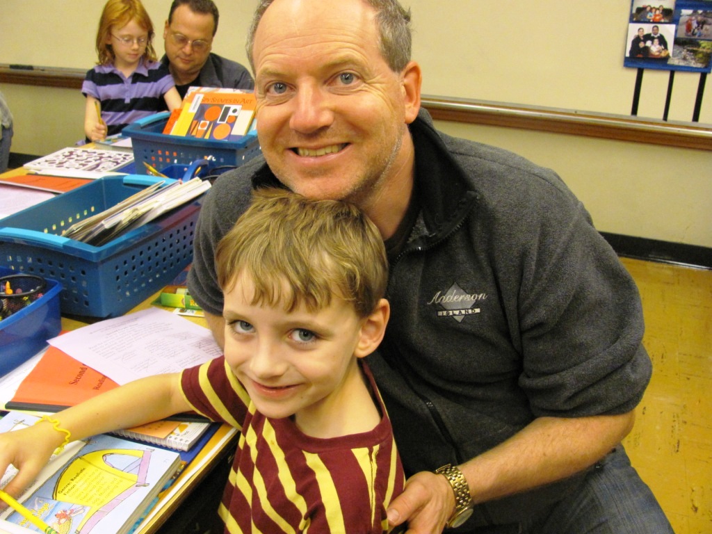 6. Strong commitment to literacy. Thanks to the creative and committed Elin Kordahl and the fantastic teachers, Maplewood is highly strong on literacy. Each year the school celebrates Read across America with local celebrity guests in the classrooms, Readaloudathon (which Mike has run for years, and which raises thousands of dollars each year for the school), Bookbaggers (an ambitious literacy-themed, elaborate sleepover, which was started by the previous librarian, Pepye Ladd), Oregon Battle of the Books (which made me wish I was a student again and could compete myself!), and Poem in Your Pocket Day. Maplewood also has a Reading Friends program, in which adults volunteer to read with kids who need a little extra reading help. Mike was a Reading Friend this year for the first time and had a rewarding experience.