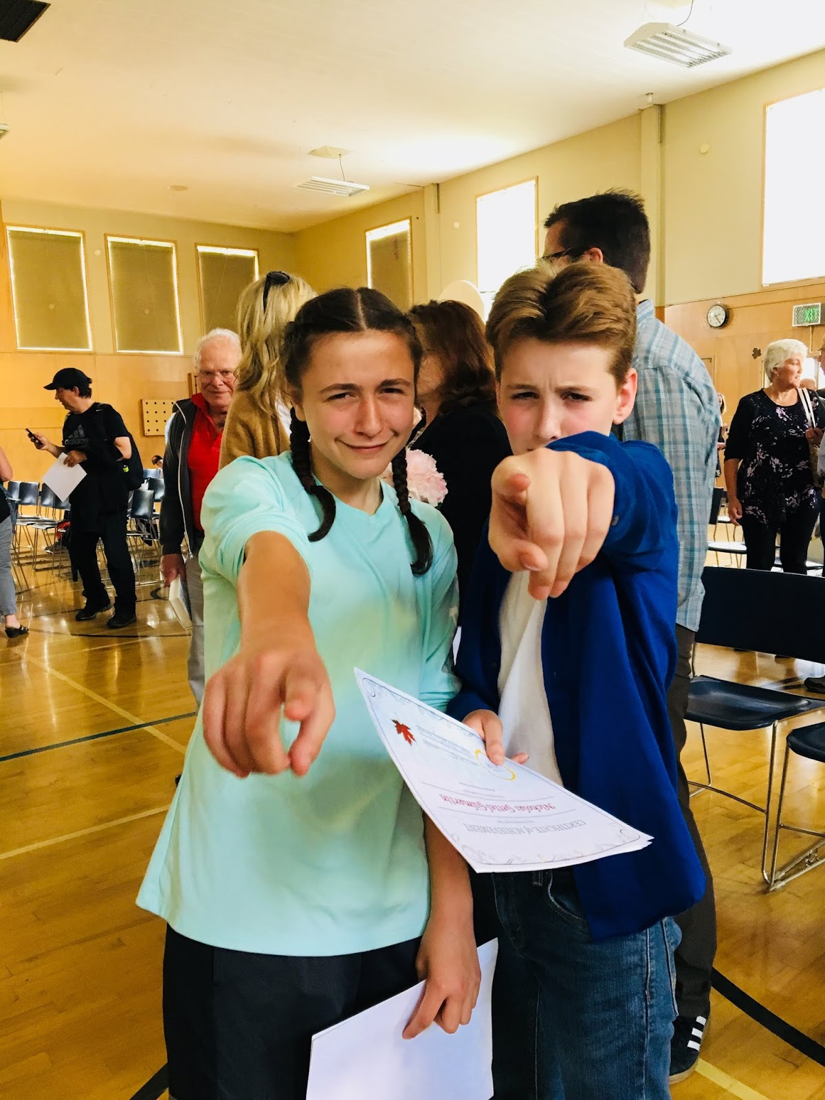 Waiting for the “clap-out,” when the fifth graders get clapped through the halls