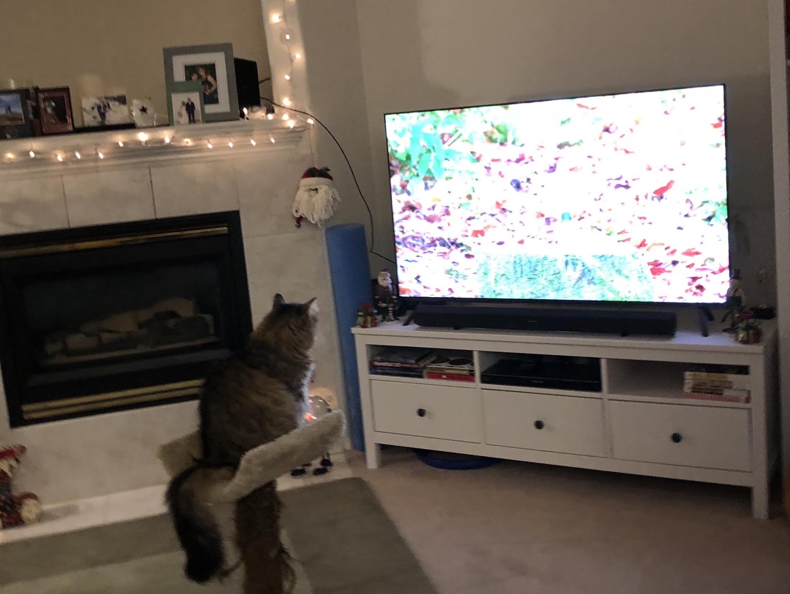 | Entertainment provided by Niki’s cats, who love to sit on their perch and watch birds and mice on TV! |