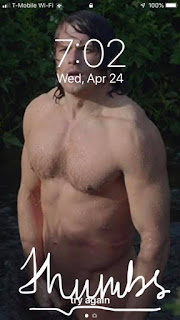 My friend Nicola read many of the sex scenes out loud in a Scottish brogue, and there’s much to laugh about in the book…especially the sex scenes! While I wasn’t paying attention, Nicola and Katie got hold of my phone and put this nude of a wet Jamie on my phone wallpaper.