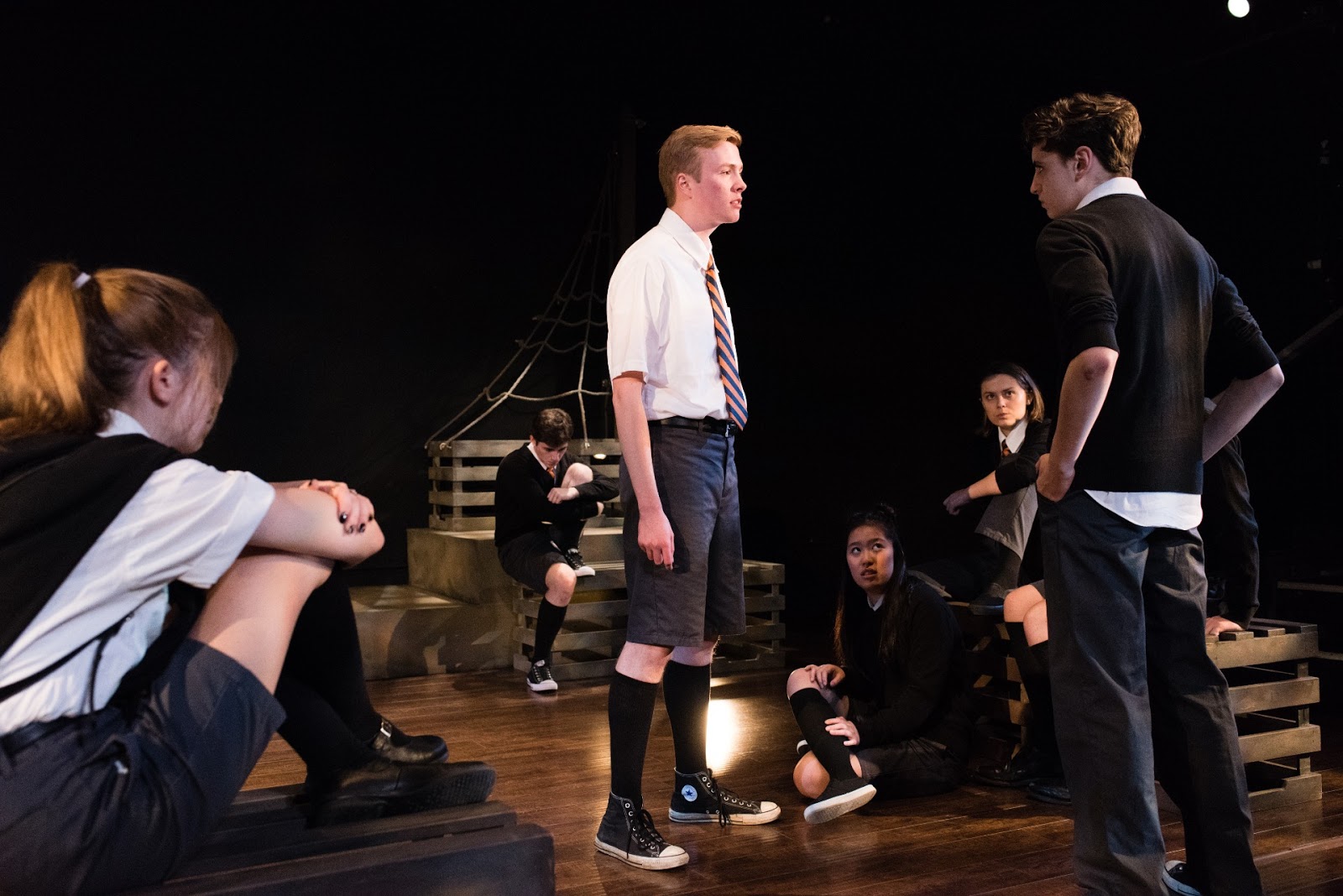 A modern-day mini Lord of the Flies, the YP cast does an excellent job tackling the British accents and difficult content during dialogue-rich, spell-binding scenes. It’s the second play Kieran’s been in this year when he’s played a sociopath. Hope this is not a trend. How about a nice leading-man role next time? (Seriously, though, he and my oldest son Chris are both drawn to these darker plays, so maybe no leading man role anytime soon!) Kieran is in only the first half of the play, and then he mostly disappears.