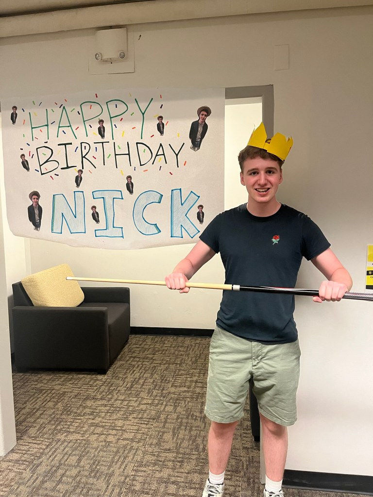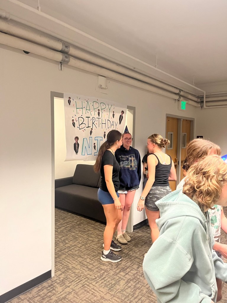 Nick’s been worried about how his birthday go, so soon after college starting, but it seems like he had a great day! He received many packages, his friends took him out to dinner, and they planned a surprise party (which he had figured out). We sent a cake, which he didn’t even eat yet!