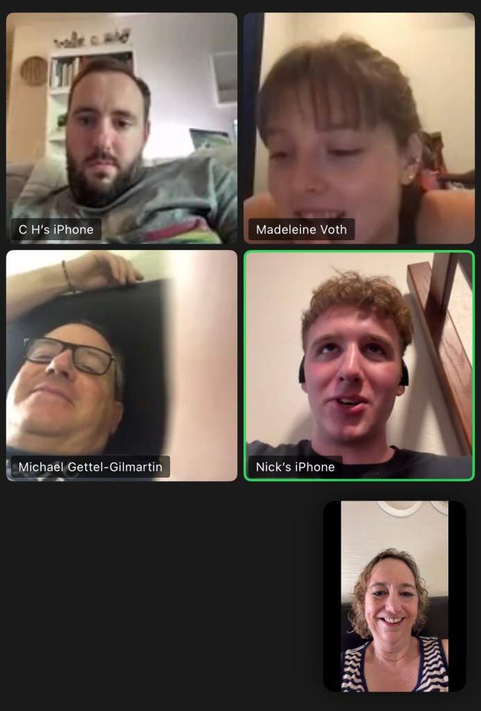 We started out the day with a family Zoom for Nick’s birthday, spanning four time zones and 16 hours.
