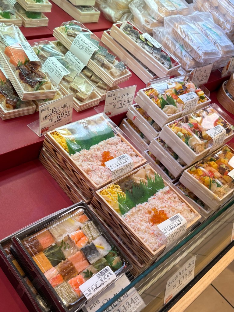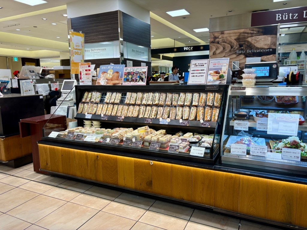 Because it was raining buckets, we spent the morning wandering through a nearby shopping center. Japanese shops and food halls are fascinating!