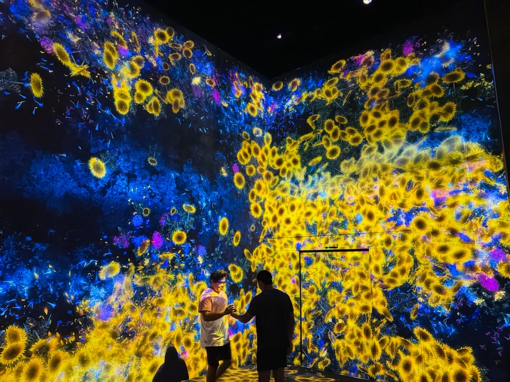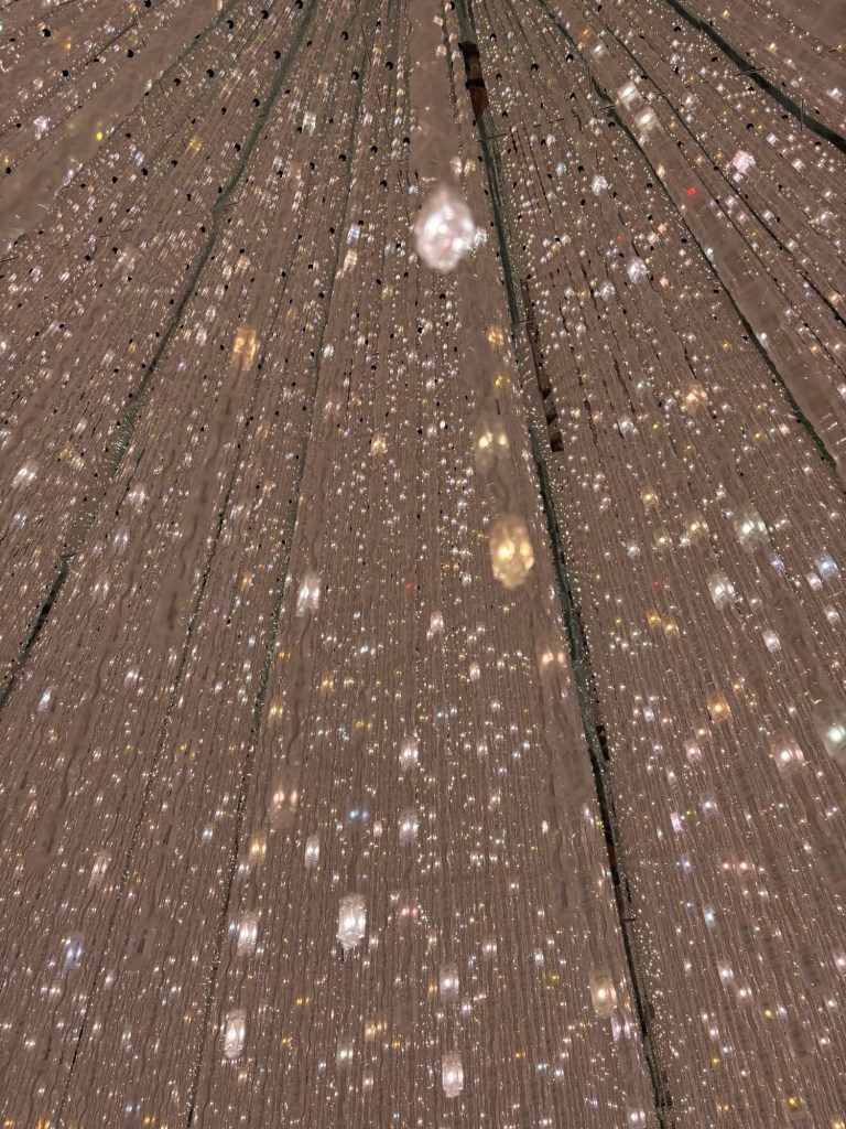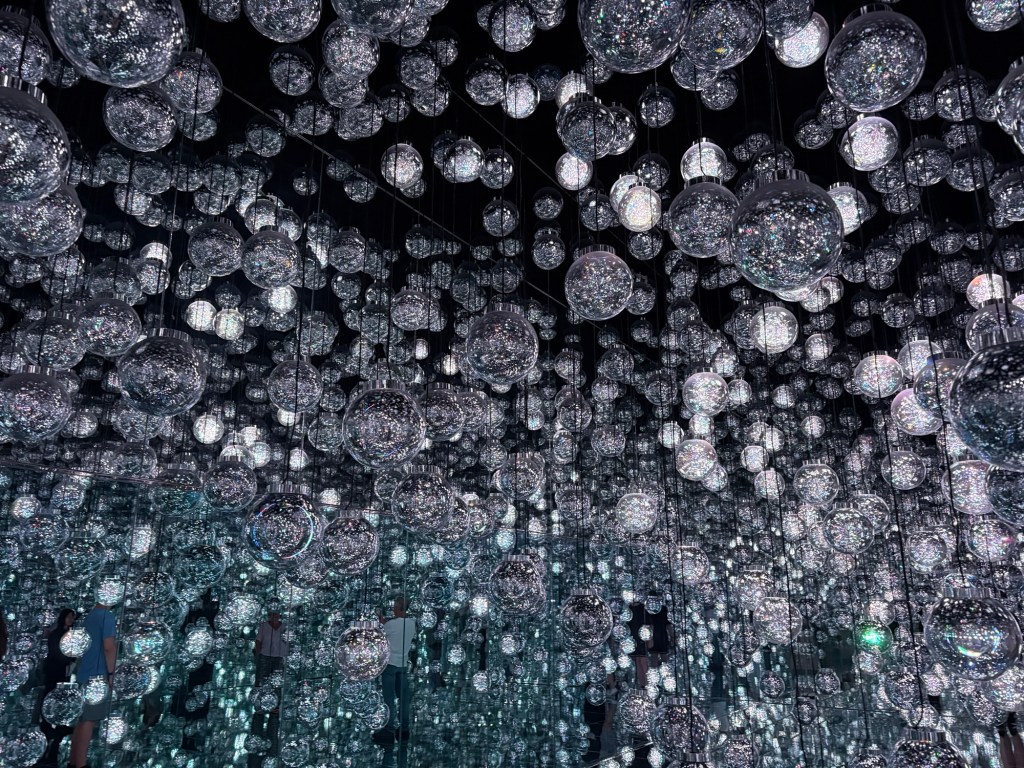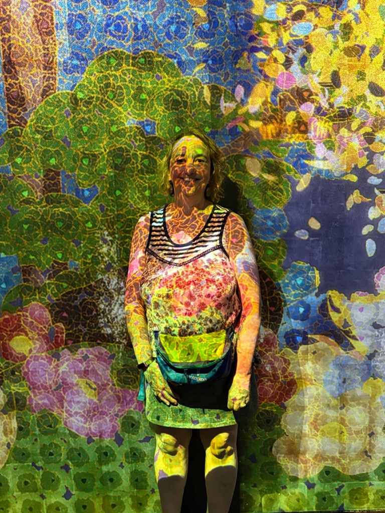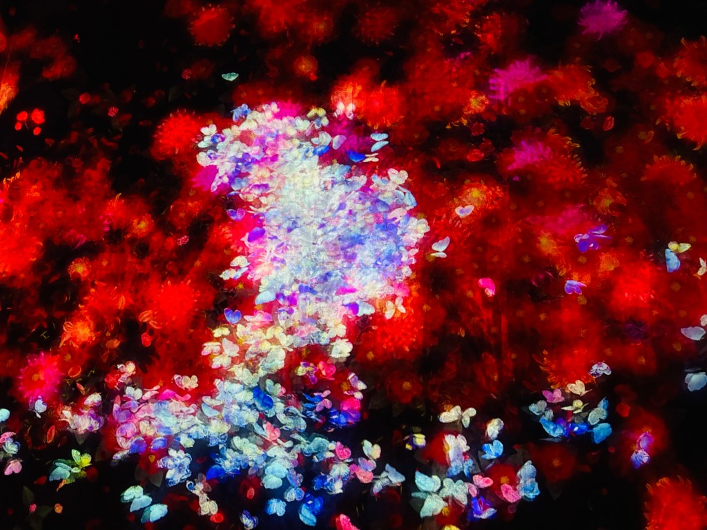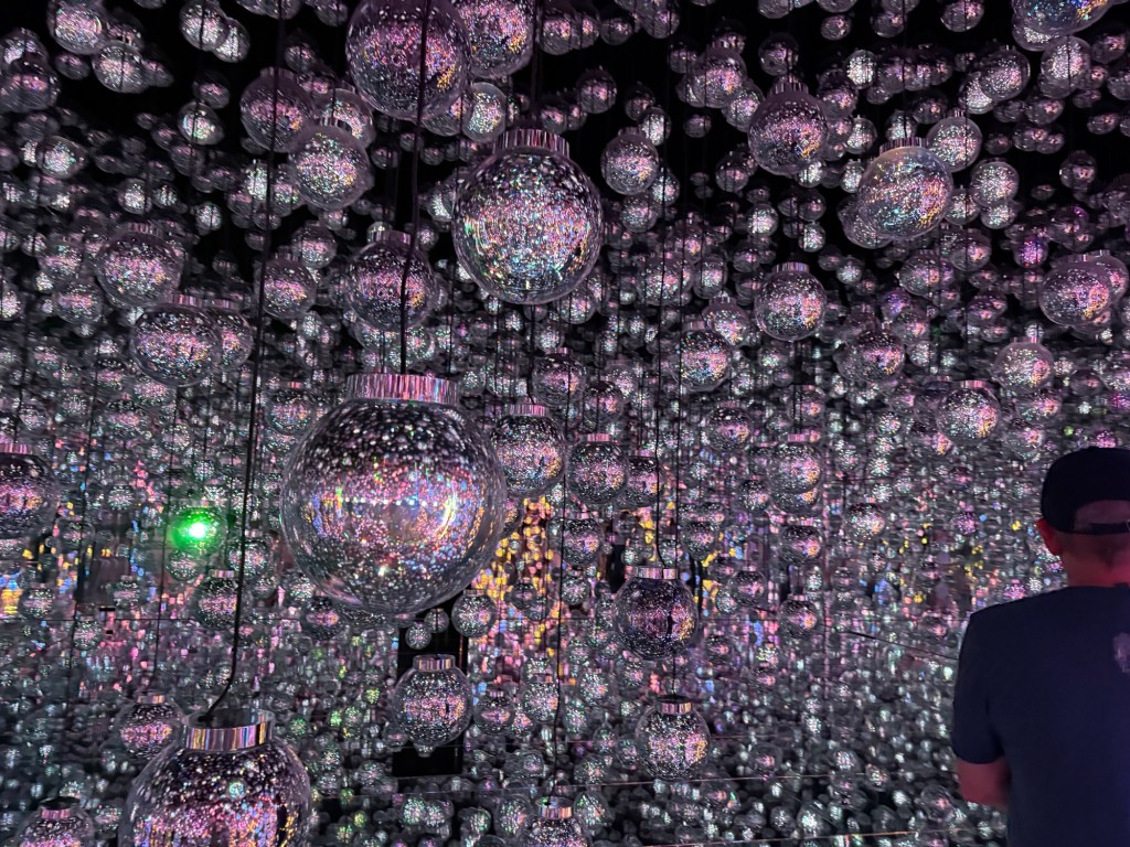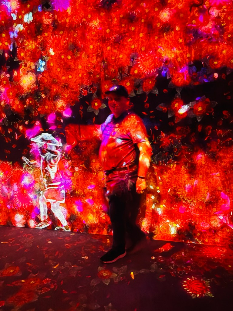 We met up with Kay and headed to Roppongi to the Team Lab Borderless, “an immersive digital art museum where visitors wander through a labyrinth of interactive installations that blend art, technology, and nature. Instead of fixed exhibits, the artworks move freely across rooms, shifting and evolving as people interact with them, creating a fluid, ever-changing environment. Light, sound, and motion come together to form a borderless world that blurs the line between the viewer and the art, inviting exploration and play. It is designed to spark wonder and connection, making each visit a unique and personal experience.”