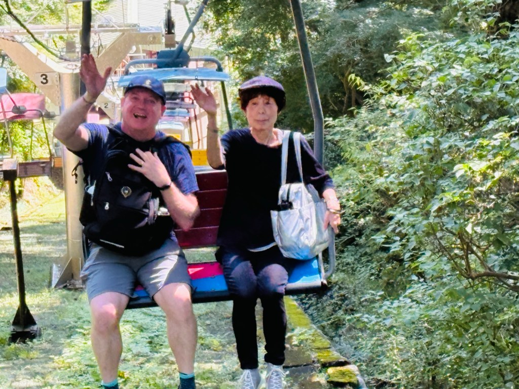 Mt. Takao has many hiking trails to the top, ranging in difficulty. You can also take a ski lift or cable car halfway up the mountain. Initially Mike wanted to climb the bottom half, but I have fond memories of ski lifts up into the mountains around Japan. I told them they could hike up and I would wait for them, but they decided to join me! Later they were glad for that choice!