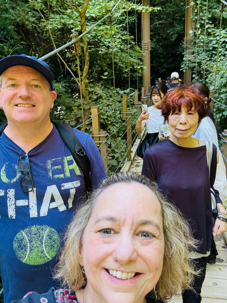 Our plan was to take route #4 down the mountain so we could pass through the suspension bridge. But somehow we took a completely different route downhill, venturing off to another mountain! As we passed lots of people going uphill, I thought to myself, “I’m so glad we’re going downhill!”