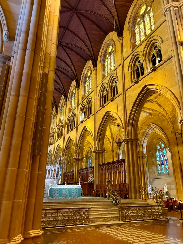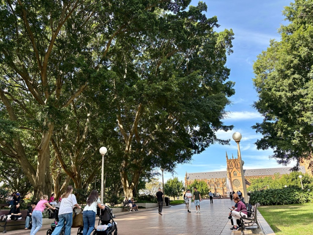 Next Alex dropped us off downtown for our walking tour. We started with the David Jones food hall for lunch. Then we walked downtown through some pricey, upscale shops (not exactly our scene!). Next we went to Hyde Park and St. Mary’s Cathedral.