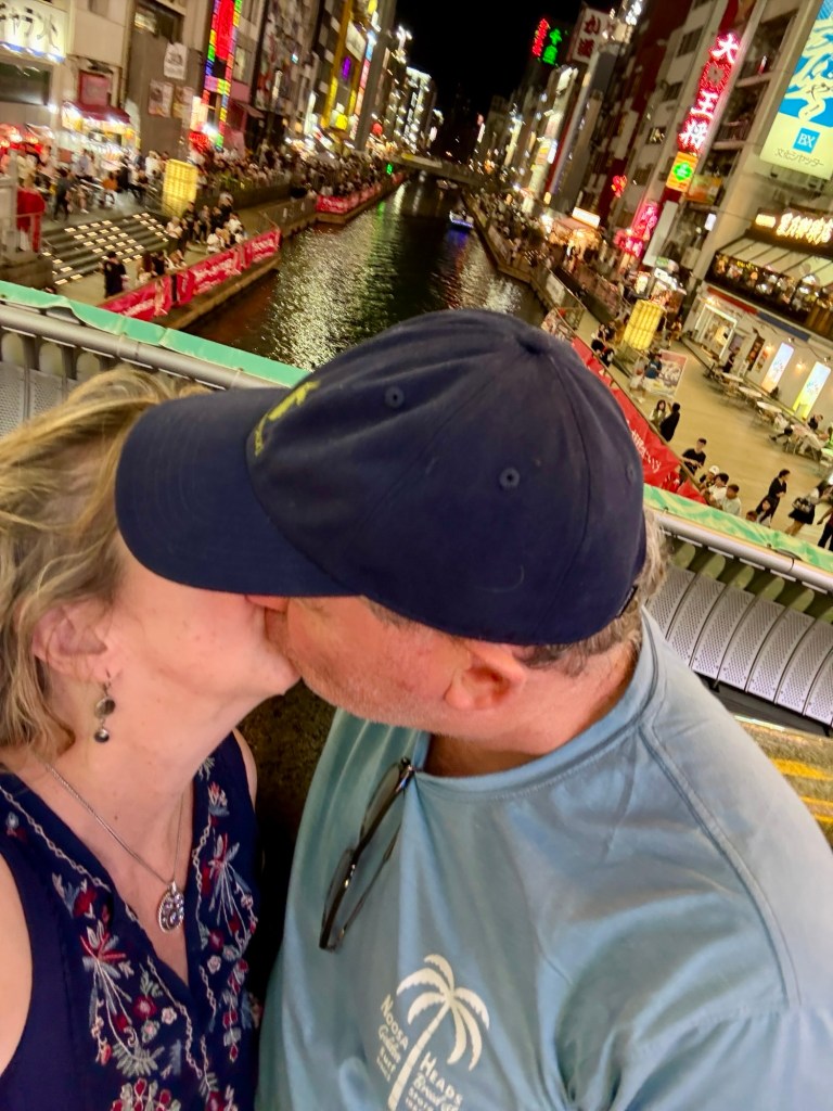 After we first started dating and hadn’t seen each other for a month, I came to Osaka and we had a night out. I’ll never forget making out on Dohtombori Bridge, shocking all the Japanese passersby (public displays of affection are not done here).