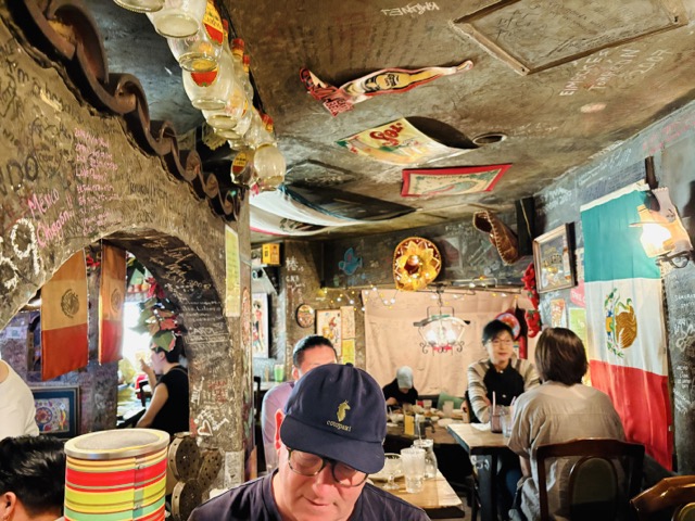I frequented this restaurant on many a lunch hour, and Mike remembers going there after hours too for pitchers of margaritas! In the ’80s, Mexican food was rare in Japan, and the restaurant was not very busy. Now it’s one of the hottest places in Osaka! They informed us we could not stay longer than 90 minutes, a common practice for busy restaurants in Japan.