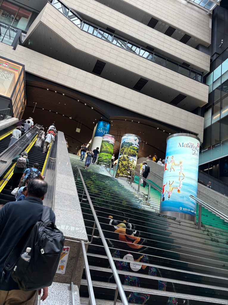 Then we went to Namba Station, one of the major hubs, to take the train to Wakayama. Namba is primary in my memory of when we started dating. We met in January 1987, and got together in April 1987. Then Mike had an English friend coming for a month, so we fell in love through letters. After the friend left, I went into Osaka for the weekend, and I’ll never forget coming down the long escalator and seeing this handsome Englishman in a suit, waiting at the bottom of the escalator. (Then commenced the makeout session on Dohtombori Bridge, which I wrote about earlier.) Namba is HUGE and fancy now.