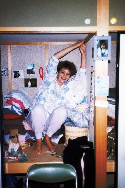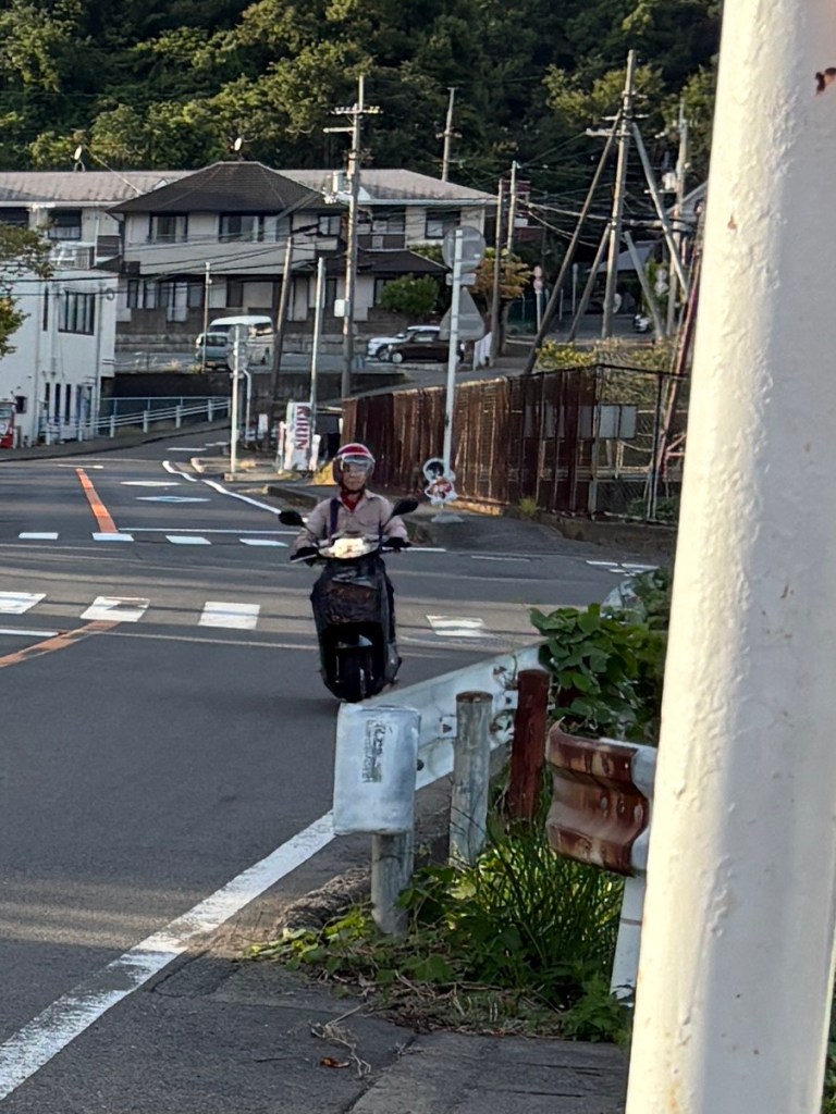 During the second half of my first year, I had a motor scooter, which I bought from one of the departing English teachers. I’d ride it to and from the station, and also to the beach. I wore a helmet, but at the time I didn’t have health insurance. I loved that scooter, even though it was more than a bit dangerous for me to ride it at night. The Japanese know how to drive alongside bicycles and motor scooters…but if one of my kids did this, I’d be freaked out!