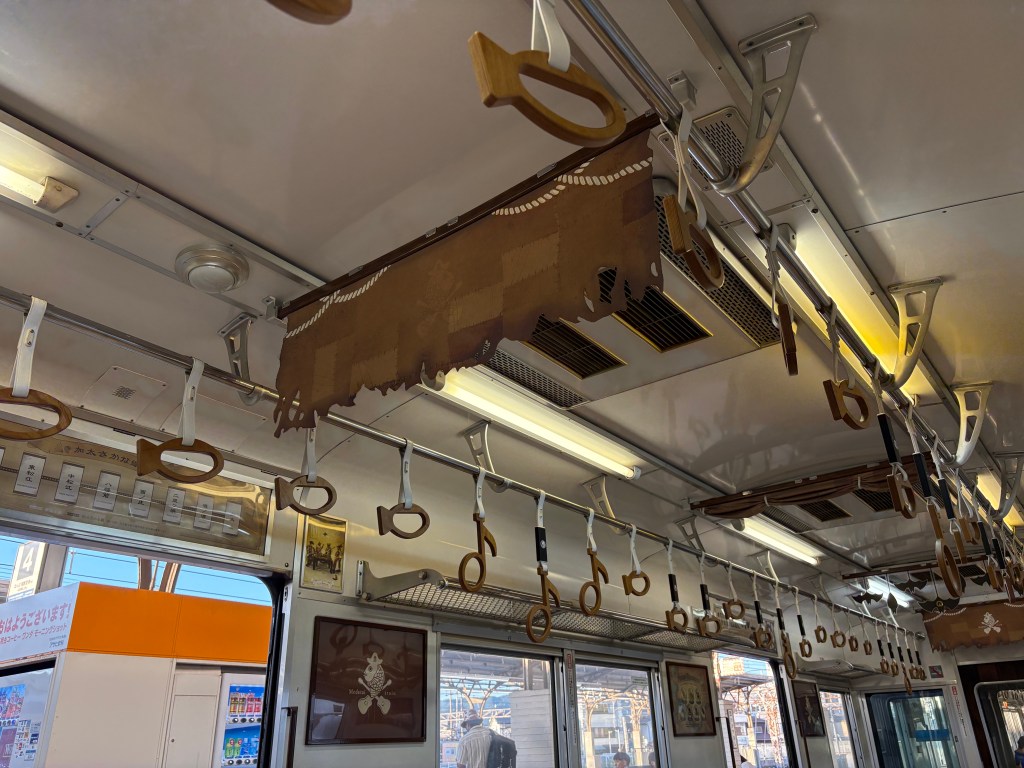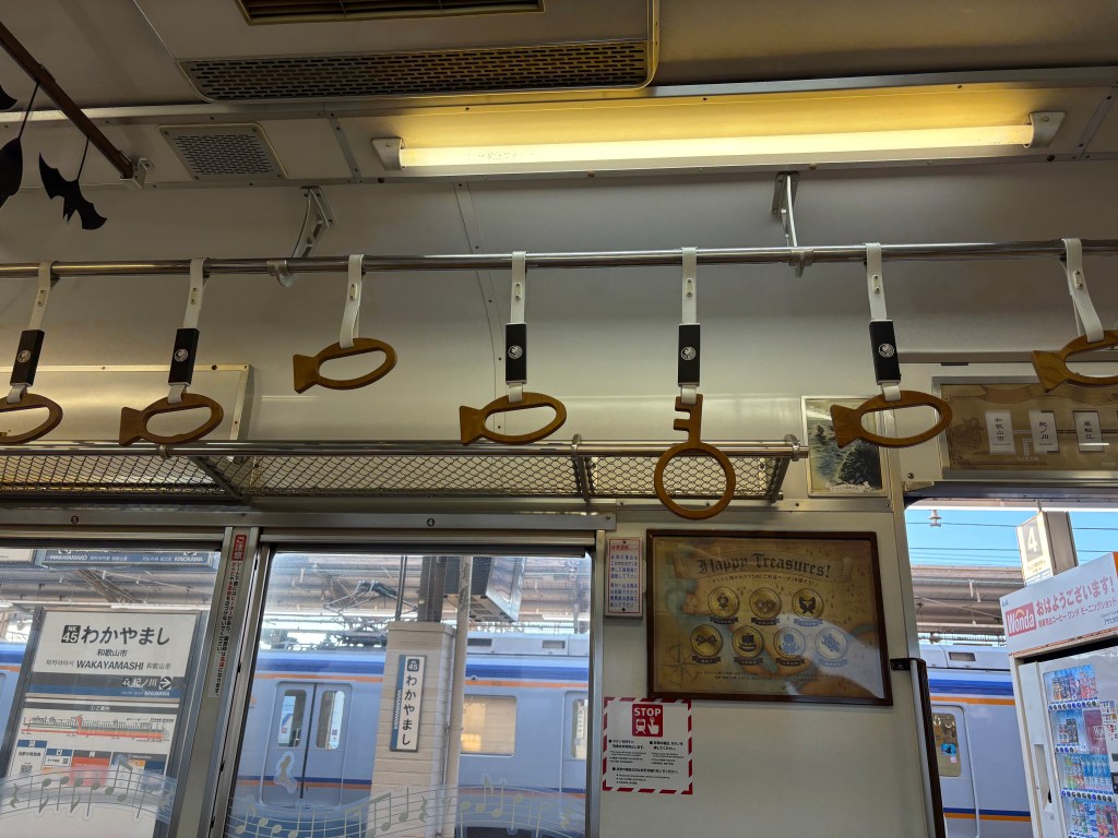 Before heading to Wakayama, we went on the search for a new, slightly bigger (and unbroken) suitcase for Mike…back to Dohtombori we went! We found one at Don Quixote, a massive tax-free store, and fortunately there was a garbage bin outside so he could transfer all his stuff and dump his old suitcase. It’s very difficult to find garbage cans, much less bins, in Japan. People carry their trash around until they go home!